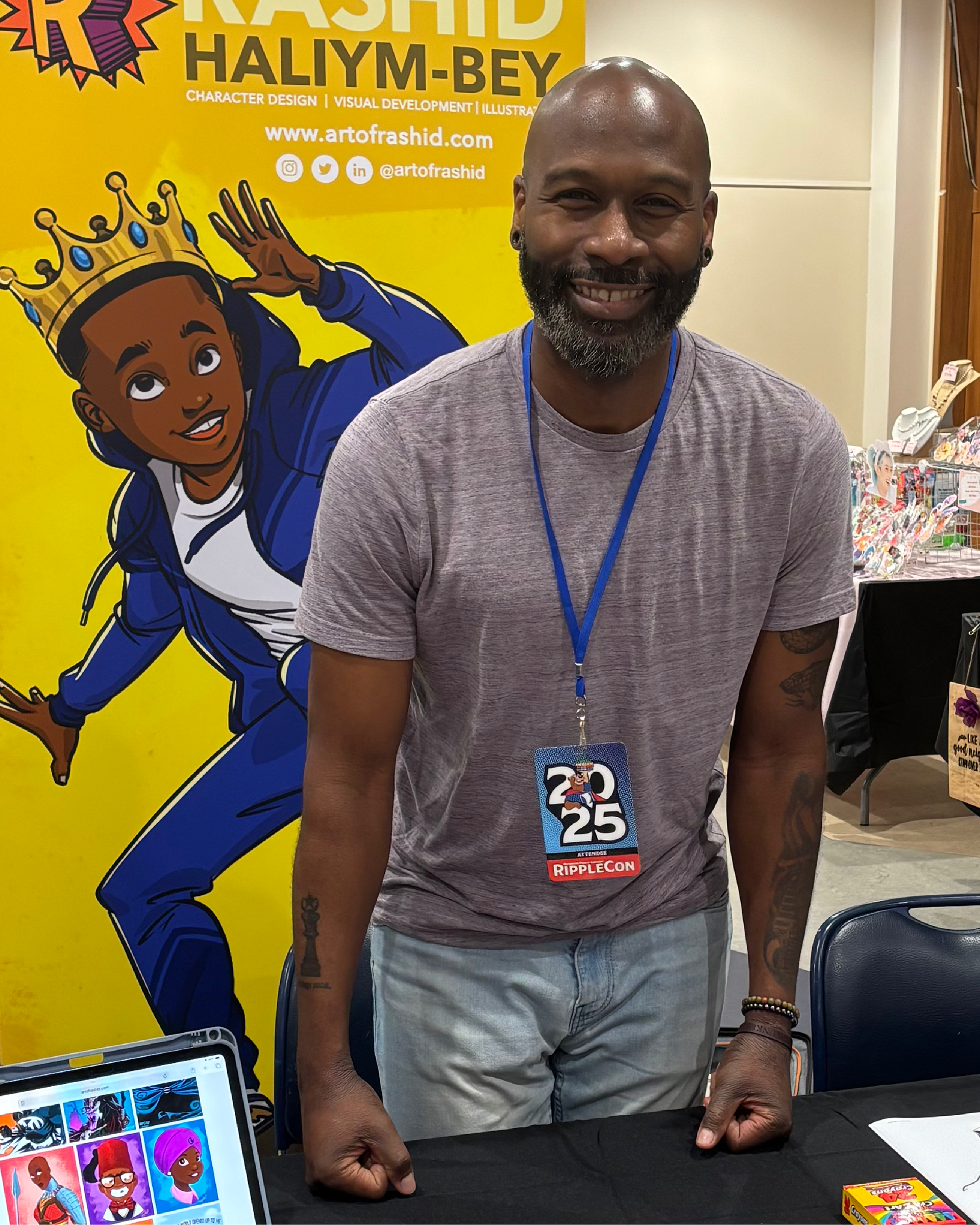 Rashid Haliym-Bey is a Visual Development and Character Design Artist residing in Richmond,VA. He creates traditional and digital imagery for animation, movies, video games, and print media. Rashid has worked with Puma, TruTV, and other local and international clients designing vivid illustrations and iconic character concepts. Currently he is collaborating with mainstream and independent creative teams to develop projects emphasizing more diversity.
